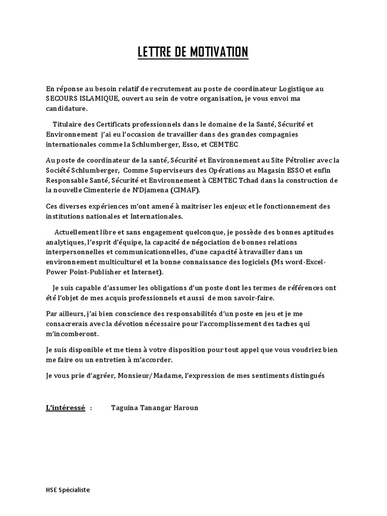 De par mon cursus et mon parcours professionnel, j'ai acquis un esprit d'analyse et valoriser mon sens de l'organisation. Mon professionnalisme, mon dynamisme et mon esprit d'équipe ainsi que mes compétences professionnelles (techniques de management, techniques d'écoute et de la relation à la personne, ingénierie de la formation) sont des points forts qui m'ont permis de progresser. Par la présente, je pose ma candidature pour le poste… ; Elle peut même faire la différence, lorsqu'elle est correctement rédigée. Une lettre de motivation est un texte dans lequel vous essayez de vous vendre, déclare lodi planting.